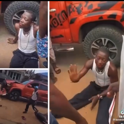 Popular entertainer DJ Chicken was mobbed by an angry crowd after he allegedly crashed his car into two motorcycles, leaving
