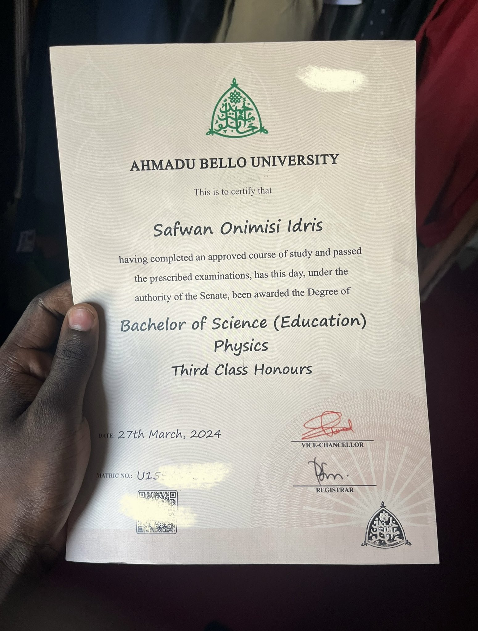 A creative designer, Safwan Idris, who graduated with a third class degree from the Ahmadu Bello University, has proudly shown off his certificate.  He shared the photos on Monday, January 26, after an X user asked if a 2.2 is worth celebrating.  Today, I receive my original BSc(Ed) Certificate from Ahmadu Bello University, Zaria. Third Class Graduate, he wrote.   The post Young Nigerian man who graduated with a third class proudly shows off his certificate appeared first on Linda Ikeji Blog.