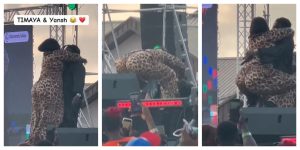 Nigerian singer, Inetimi Alfred Odon, better known as Timaya, fell off stage while trying to lift a plus-sized woman during