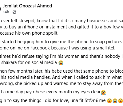 A Nigerian lady, Jemilat Ahmed, has recalled one of the self-sacrificing things she did for love a few years ago. According