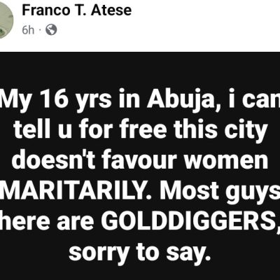 A social media user, Franco Atese, has declared that Abuja doesn’t favour women in terms of marriage. Atese, who has lived